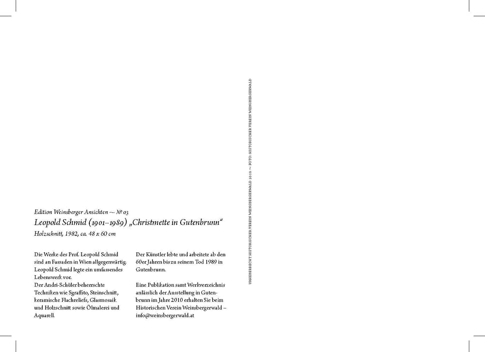 Leopold Schmid, »Christmette in Gutenbrunn«, Ansichtskarte im Format A5