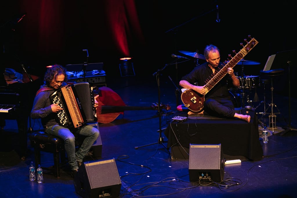 Akkordeonist Luciano Biondini und Klaus Falschlunger an der Sitar gehören zu jenen Musikern, die mit offenen Augen und Ohren ausgestattet, immer wieder ein Aufeinandertreffen von unterschiedlichen Musiktraditionen und Stilrichtungen suchen. In ihrem neuen Programm »Once In A Blue Moon« durchstreifen die zwei Virtuosen, die weiten Galaxien der westlichen und östlichen Musikhemisphäre – Seelenmusik voller Poesie, Energie und feinem Humor.